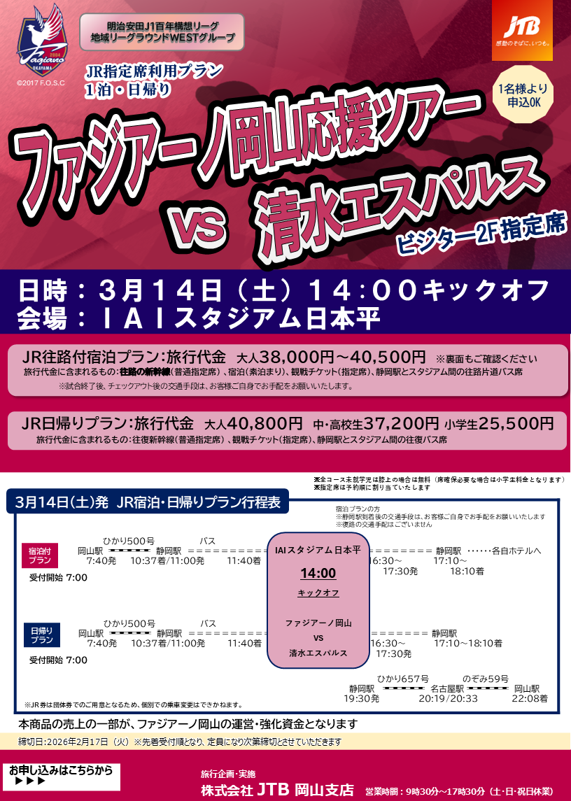 清水エスパルス戦にお申込みの方へ