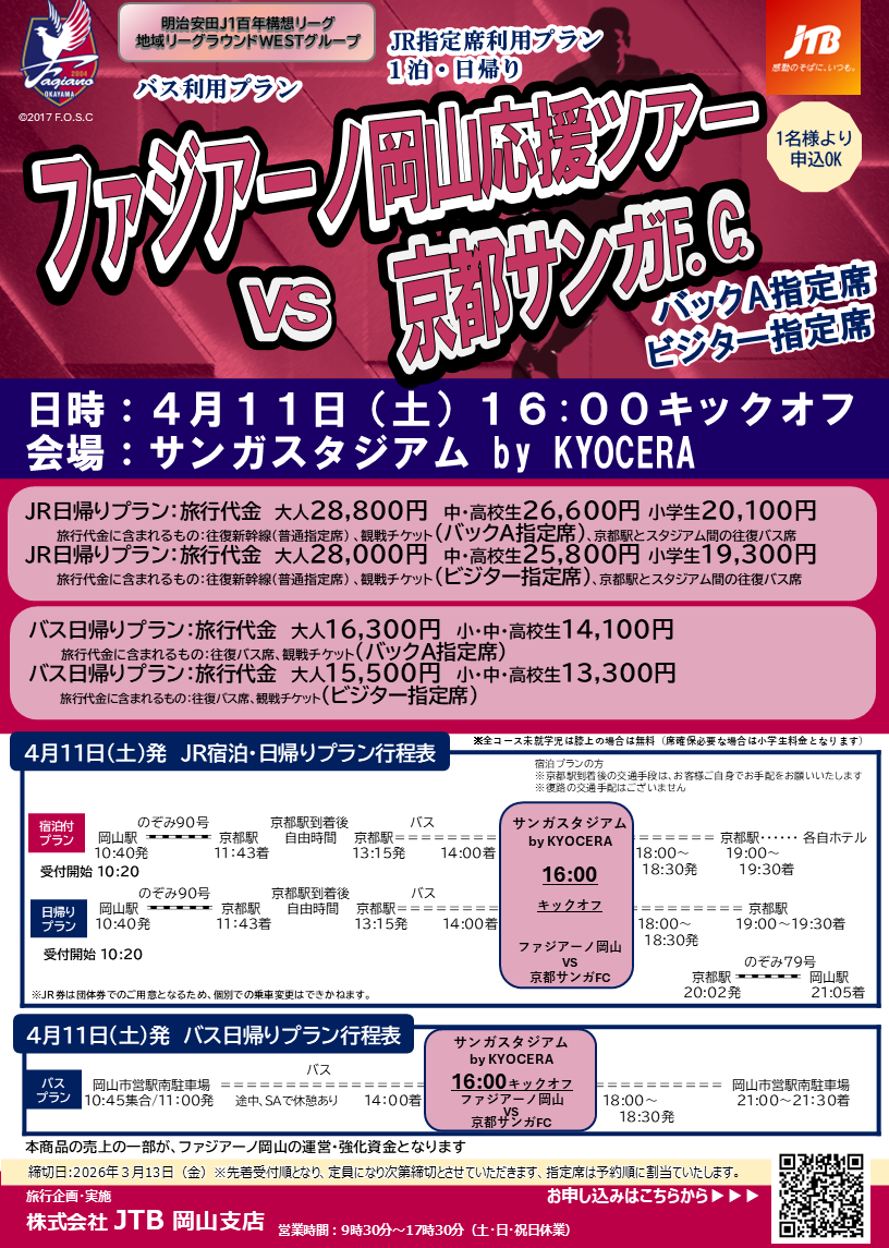 | 京都サンガ | 4月11日(土) | 2月24日(火)15時~ | 販売予定 |