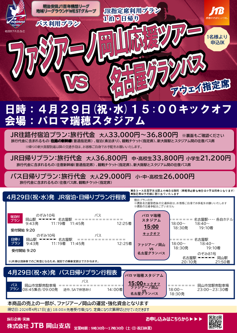 | 名古屋グランパス | 4月29日(水) | 催行中止 | |
