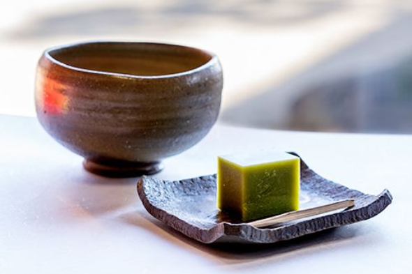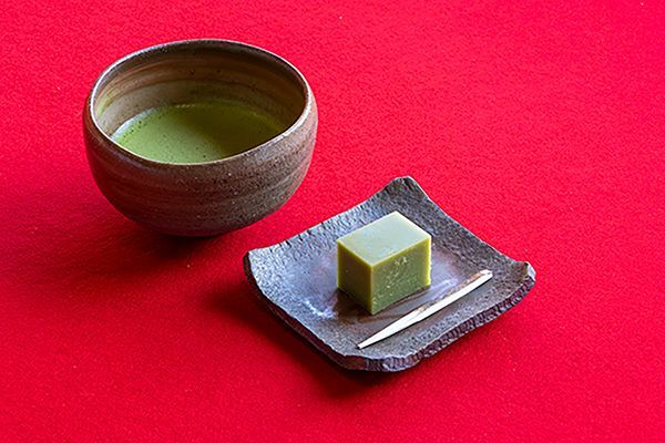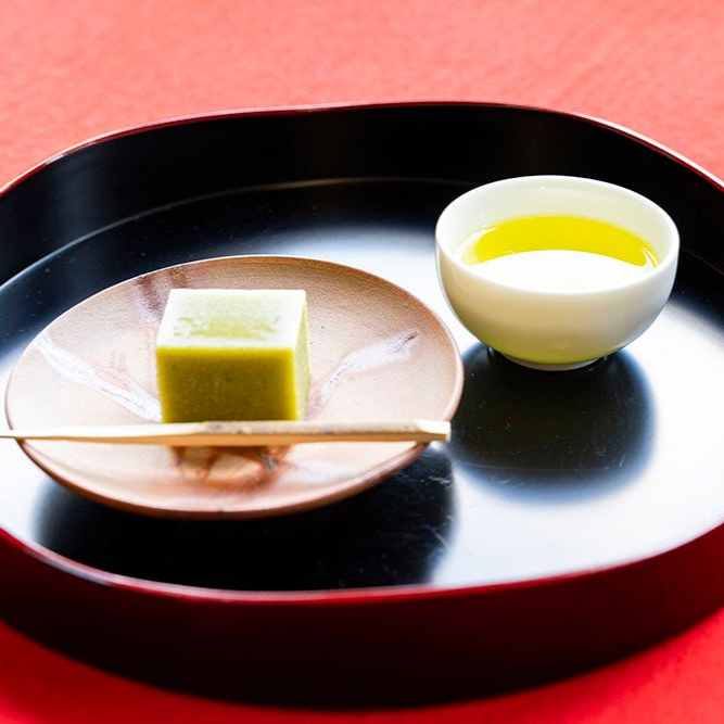 7代藩主・池田斉敏の好んだ「空豆羹」と後楽園で育った茶葉を使った煎茶「お庭育ち」で、お庭を眺めながら至福のひとときをお過ごしください。