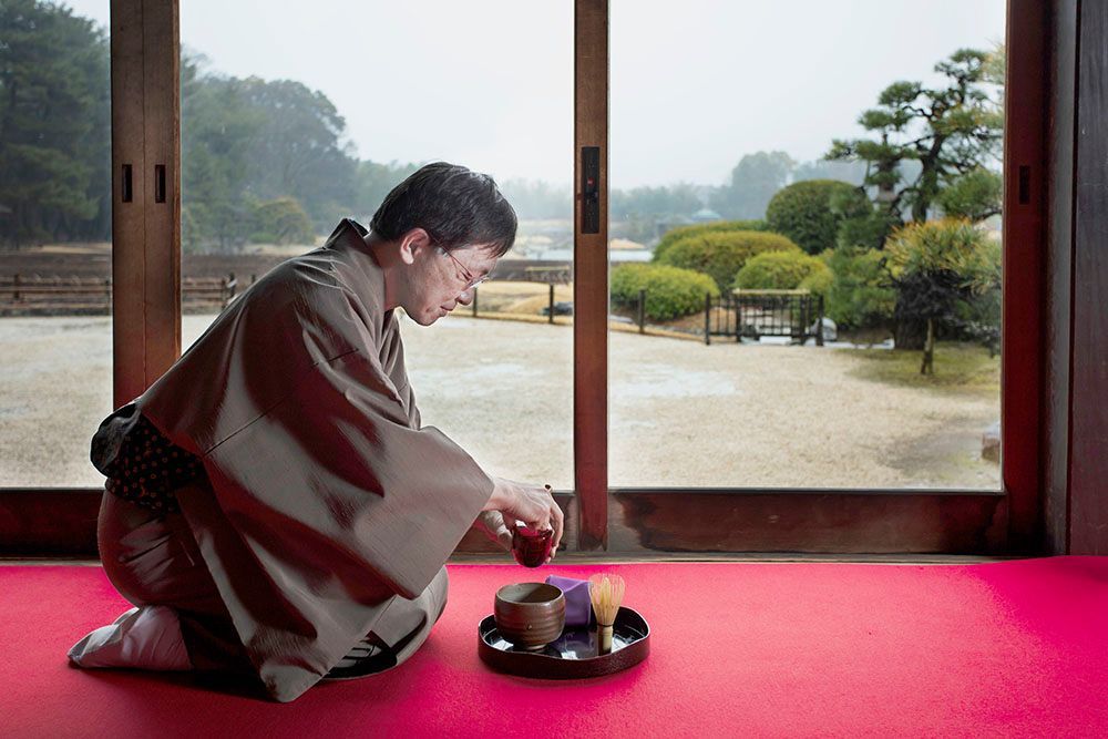 園内の亭舎にて、岡山の老舗茶舗・小林芳香園による利き茶「茶香服」の体験をお楽しみ下さい。茶香服とは茶葉の香りや味わいを頼りに種類を当てる日本の伝統的なお茶の遊びです。五感を使ってお茶の個性を感じ取り、楽しみながらお茶への理解を深めることができます。