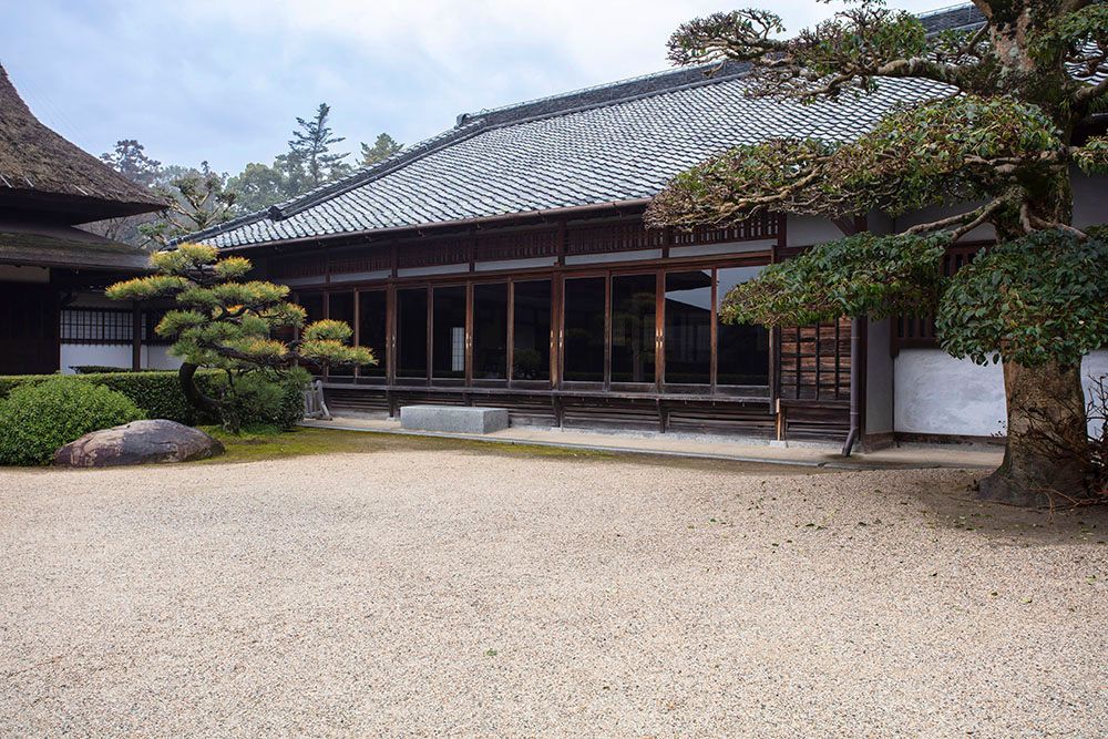 園内で最も大きな建物で、藩主が広から来場した時の随行の重臣や側近の控えの間や賓客をもてなす場として使われていました。戦災で消失し、現在の建物は1949年に山口県岩国市の吉川邸を移築したもので、武家屋敷の佇まいを感じることができます。