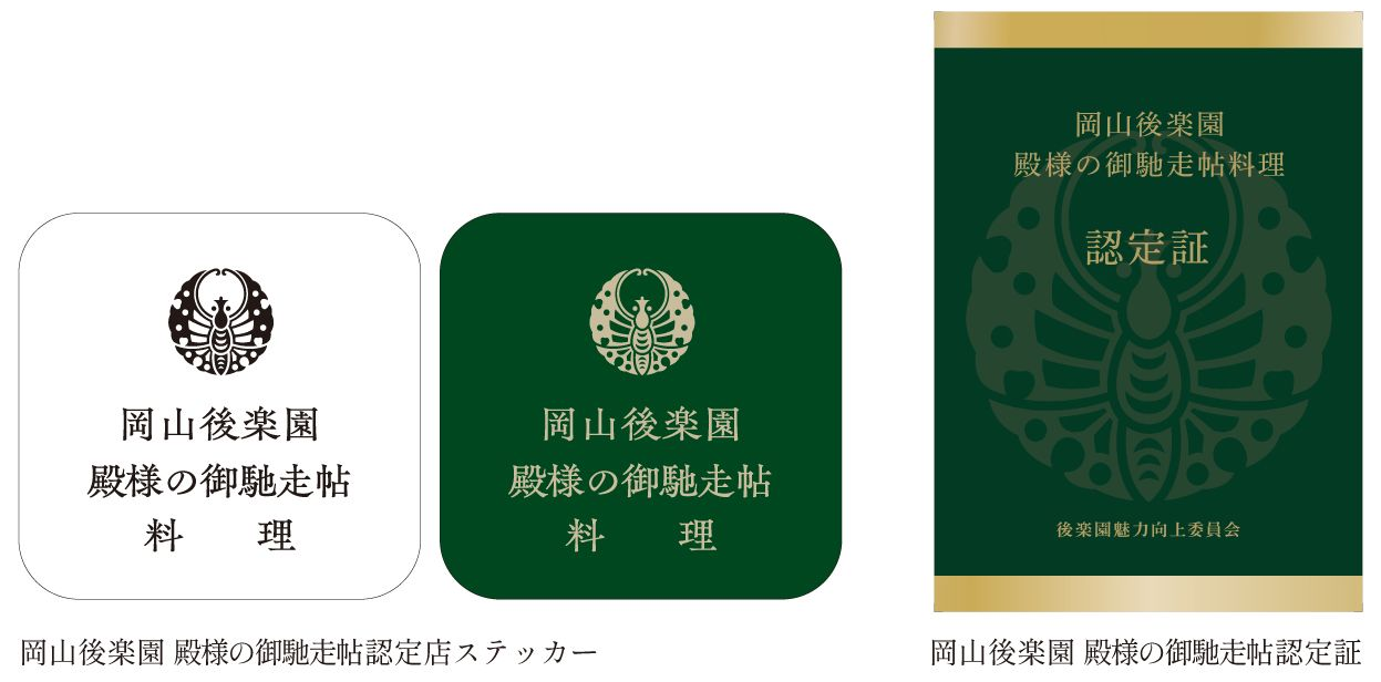 「殿様の御馳走帖」に掲載されている献立を取り入れた料理を提供する店舗を「岡山後楽園殿様の御馳走帖料理」認定店として認定しており、各店舗ごとに解釈による再現料理をお楽しみいただけます。