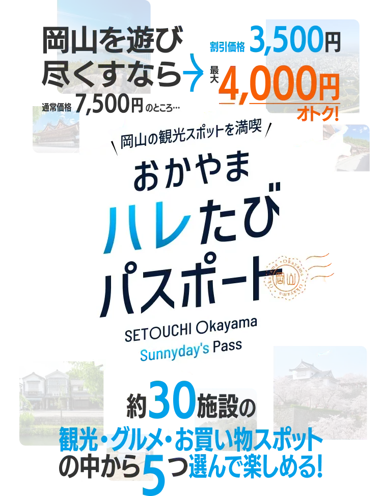 岡山県内の人気スポットを満喫できるデジタル周遊券です。